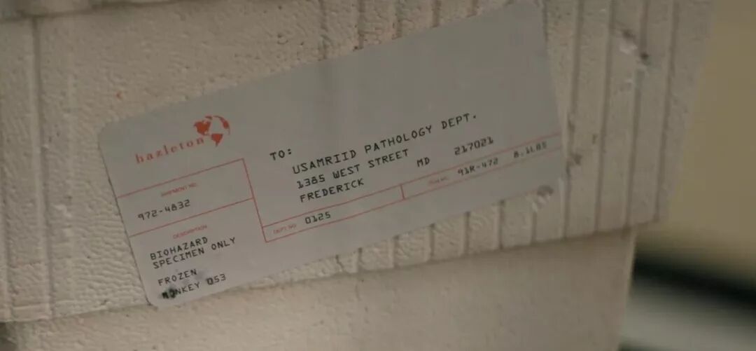 样本旁有留言:已经有两只猴子受到感染死去,死因未明。