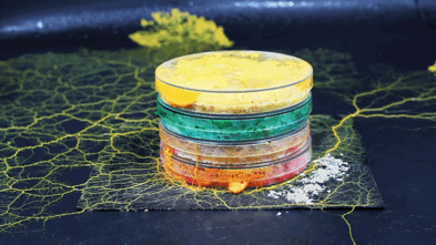 我有一天在网上看到了一个视频,是一个老外拍的,他把多头绒泡菌养在培养皿里面,养了好多盒,后来多头绒泡菌全部越狱了。它们相互勾结,一抖一抖的,越来越多,最后全部都跑出来了。