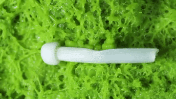 我用蓝色的背景拍了一个松发菌的生长视频,大家注意看,这有一个动作很可爱。