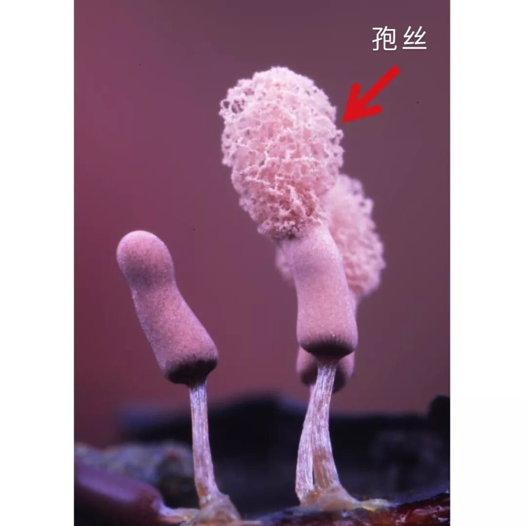 还有这种孢丝都弹出来的,孢丝是藏在孢囊里面的,快成熟的时候它就会弹出来,把孢子弹走。