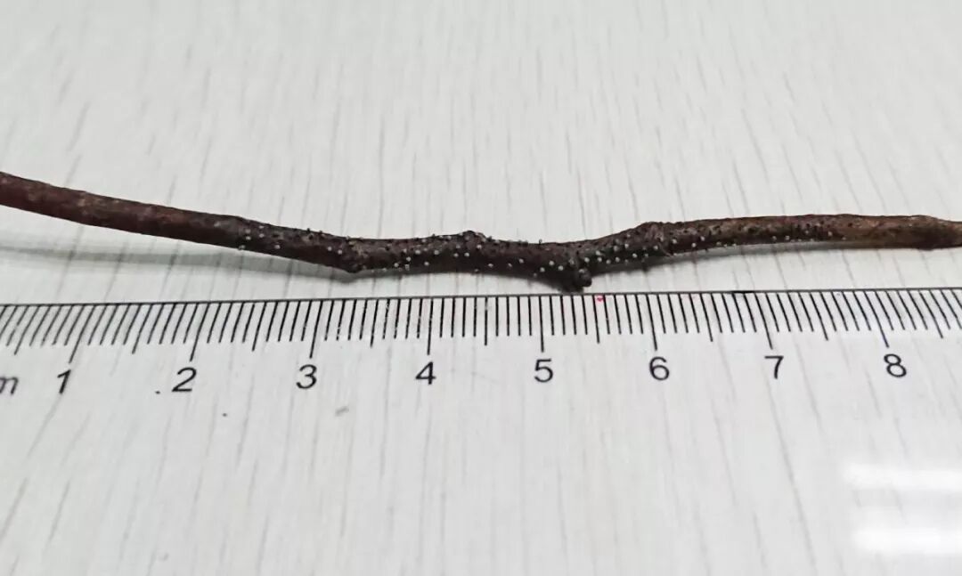 去年夏天,我在上海的一个公园里面闲逛,我一边走一边看着两边的灌木丛,后来我就看到这么长的,十厘米不到的小树枝上面有好多点点,仔细看它不到0.5毫米。我是这样直立行走的,我都能看到这个东西。我就蹲下来开始拍它。