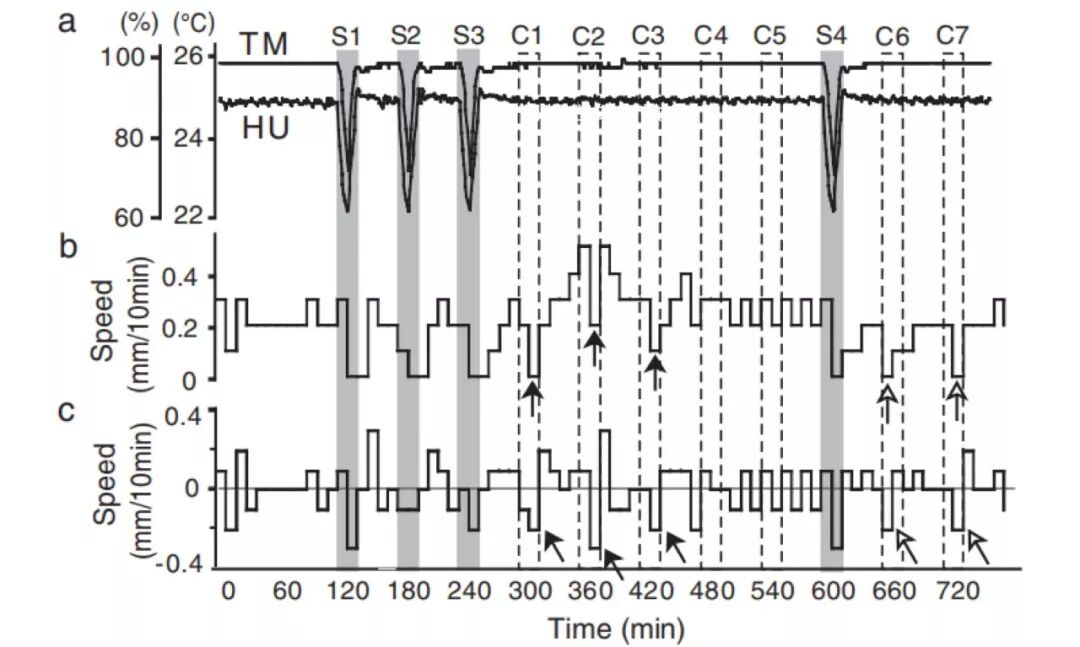 但是神奇的是,科学家发现那些不一样的网络,在总长度、效率、容错性方面都不比实际的网络差,也曾经走出来和实际网络差不多一样的路线。 黏菌它不仅有计算能力,它还有学习和记忆的能力。这又是一个科学家做的实验,他们每隔60分钟给黏菌一个刺激,就是用冷风吹它,它会在被吹的那一会儿里降低爬行的速度。他们连续这样做了3个小时,每次一刺激,它速度就会变慢一阵子。 到第4个小时的时候,没刺激它,它竟然也变慢了,后面两个小时也有变慢的迹象,直到好几个小时以后,它才忘了这个事情。但等到第九个小时,科学家又刺激了它一下,它就想起了之前发生的事,在第十个小时和第十一个小时的时候又变慢了。