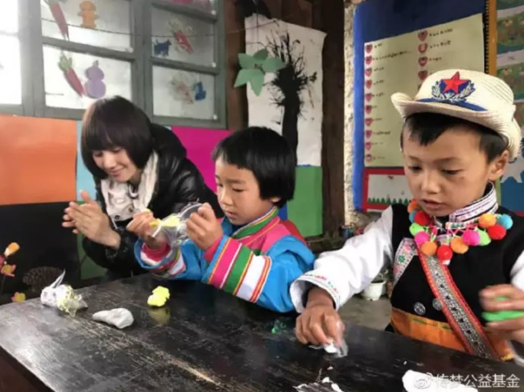她和夏雨领养了十个贫困山区的孩子,还亲自前往滇缅边境的滇滩镇烧灰坝小学,并那里的孩子和学生展开了一场长达520分钟的史上最长公益直播。