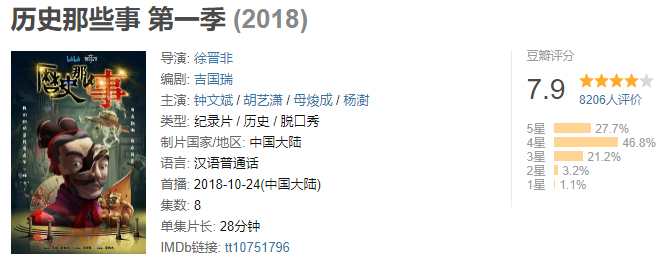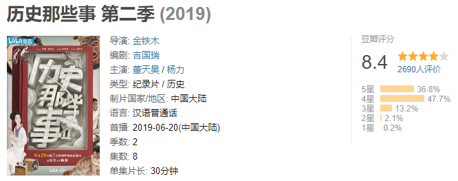 这部文化纪录片《历史那些事》由B站出品,共两季,分别在豆瓣上拿下了7.9、8.4的高分。