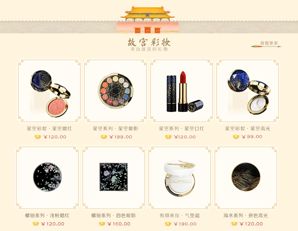 他们开设故宫淘宝店,设计中国传统风格的口红、眼影,每次上新,都能引起不小的关注。