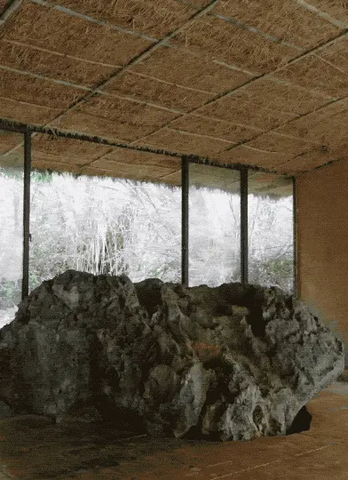 茶寮的设计:将原本就存在的石头包裹进去,形成独特景观