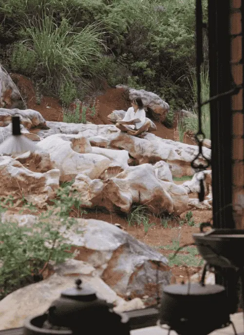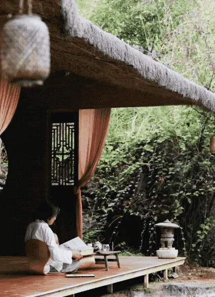 我在园子里建了一个茶寮、一个琴台、一个书房、一个亭子,都是依着山势和水流来安排的。我没有用很现代的材料,大多是就地取材:山上的木头、后山的泥土、当地的茅草、甚至是从前山移来的竹子……我想让这个园子看起来就像是自然长在这里的。