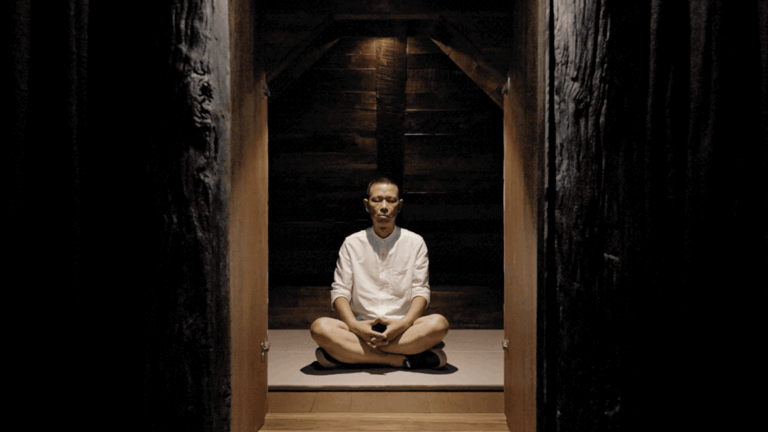 顺着木质护栏的楼梯一直向上,来到用木头搭出的阁楼,推开一扇小门,一处极静的禅修洞,仿佛来到了某个深山中隐世的木屋。