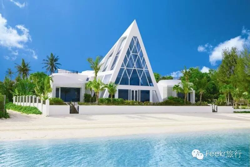 幸福蓝星教堂蓝白相间呈三角形状,是典型的希腊式建筑风格,浪漫有余。灿烂的阳光够过大片大片的蓝色玻璃窗洒进来,有种莫名的幸福感,一眼往窗外望去,碧海蓝天连成一线,仿佛就是走在了天海间,推开教堂一楼的大门就能直接走到杜梦湾的白色沙滩上。