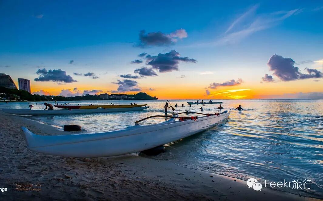 如果在关岛只能选择一个海滩,那么一定是杜梦湾。从空中俯瞰整个海湾,不同的蓝色尽收眼底。踩在沙滩上感受海水的温度,眺望远处的情人崖,悠哉悠哉的漫步在绵软的细沙中,很是惬意哦。夕阳下,只见杜梦湾镶着金色的光环,耀眼而又绚烂;海天一线处,像油画里的一抹,充满了别样的美。