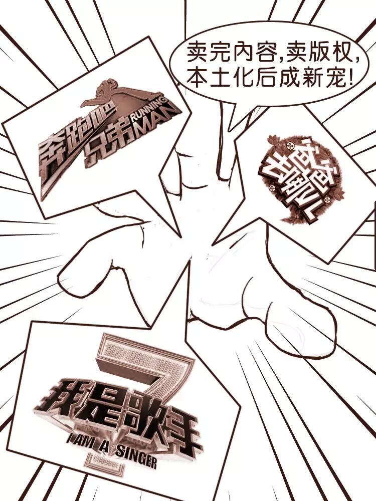 主打韩剧的1.0时代主打音乐的2.0时代,现在主打综艺的3.0时代已占据中国的大半市场。早在2006年,就有电视台引进播出韩国综艺节目《X-MAN》,成为周末逗笑观众的杀手锏。近两年,韩国综艺的引进方式从早期的单纯引进节目内容来播放,发展成了购买节目版权来本土化制作和包装。