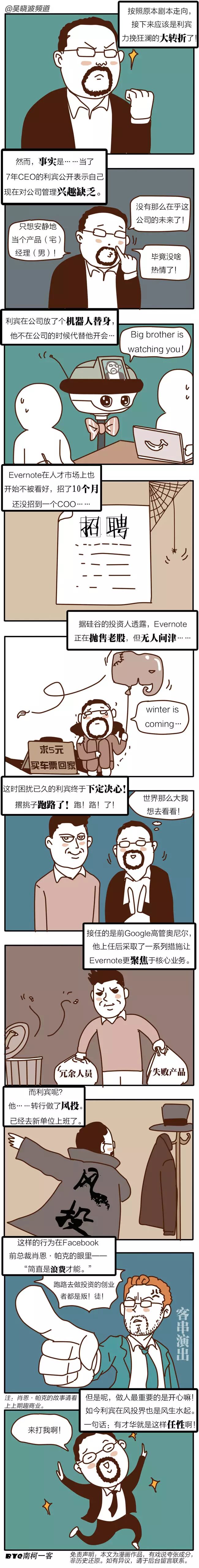 很多技术型CEO、产品经理型的创始人,在公司发展壮大之后,往往会遭遇管理上的瓶颈,直接导致整个公司的发展迟滞,甚至死亡,Evernote就是典型例子,这类创始人必须在公司的发展过程中不断提高管理能力,又或者干脆找职业经理人来替代自己管理公司。利宾选择了后者,但更多时候,创始人必须自己坚持学习,实现自身管理能力和公司规模的同步跃升。