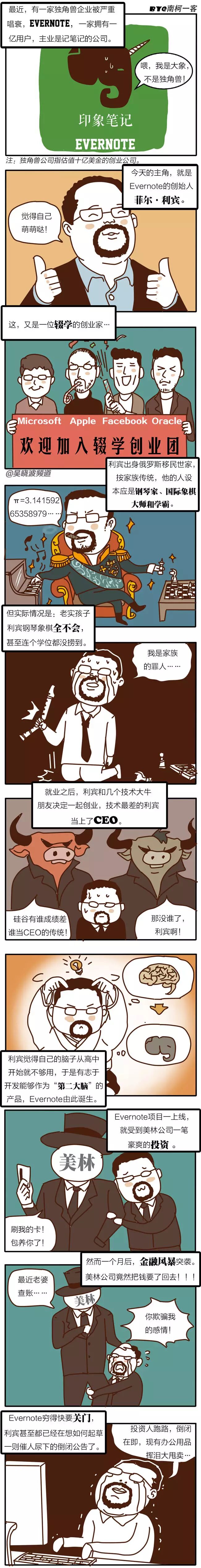 “独角兽公司”是指那些估值达到10亿美元的创业公司,其中的当红炸子鸡就有Facebook、Uber、YouTube、Airbnb等等,Evernote(中文版叫“印象笔记”)也在2012年加入。目前拥有1.5亿用户、2004年收益3600万美元的、曾经拥有高口碑产品的Evernote,却正在把一手好牌打烂,距离IPO越来越远,屡屡被业界唱衰。