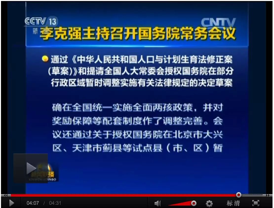 2日召开的国务院常务会议,通过《中华人民共和国人口与计划生育法修正案(草案)》。草案明确在全国统一实施全面两孩政策,并对奖励保障等配套制度作了调整完善。(中国政府网)