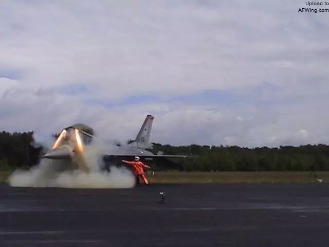 嗯,是很奇葩,不过还真有——就是飞机在地面上停着,飞行员误操作,拉了弹射手柄。就是教科书标准的“五零弹射”。
