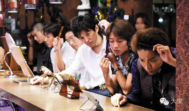 (电视剧《牛郎俱乐部》剧照,男公关们正在化妆)