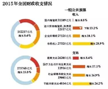 2015年全国一般的公共预算收入是15兆2217亿元人民币,没有达到原来预算的7.3%的增长率。