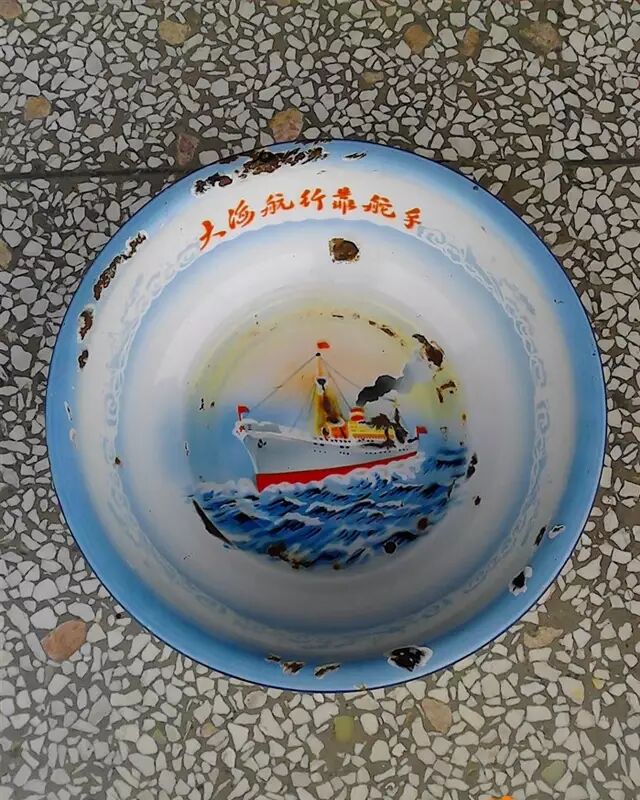 进商店向左转卖食品,右转是日用品。和食品部比,日用品部冷清很多,因为卖的东西太单调,一排货架,上层摆一排暖水瓶,下层都是洗脸盆,铝制暖水瓶很鲜艳,大红中间带双喜字,洗脸盆有冬天的梅花,有大海航行靠舵手,有彩色图案,也有字,毛泽东的咏梅“俏也不争春,只把春来报”或“大海航行靠舵手,干革命靠毛泽东思想”。时隔三十多年后,跟团旅游去朝鲜,进了宾馆商店,就想到铁路商店的日用品专柜。