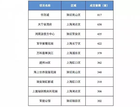 这些成交量来自于北上广深的224个楼盘。在成交量排名中,深圳南山区华润城以817套的成交量位列第一位;第二位是上海大宁金茂府,成交638套;第三位是深圳鸿荣源壹方中心,成交435套。有10个楼盘的全年成交超过300套;而全年成交量排名前50位楼盘成交量都超过100套。