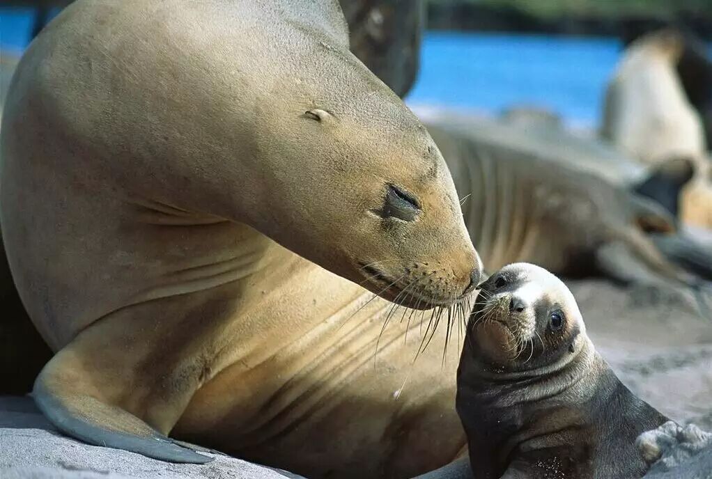 即使在哺乳动物内部,也同样有不负责任的母亲和甘于付出的母亲。像海豹是母子关系维持时间最短的哺乳动物之一。雌海象在四岁时生育第一个孩子。每年繁殖,寿命平均为十八年。它们每年冬天在加利福尼亚圣克鲁斯北部的一个岛屿上交配。然后重达1000斤的怀孕的雌性来到海岸,在沙滩上找个地方,于24小时内产下约90斤的幼崽。接下来的三到四周内,母亲为她新出生的孩子提供乳汁,她们的乳汁营养非常丰富,其中的脂肪含量高达55%。为了生产足够的乳汁,她的体重会减少近三分之一,而她的孩子会迅速增长到出生体重的三倍。