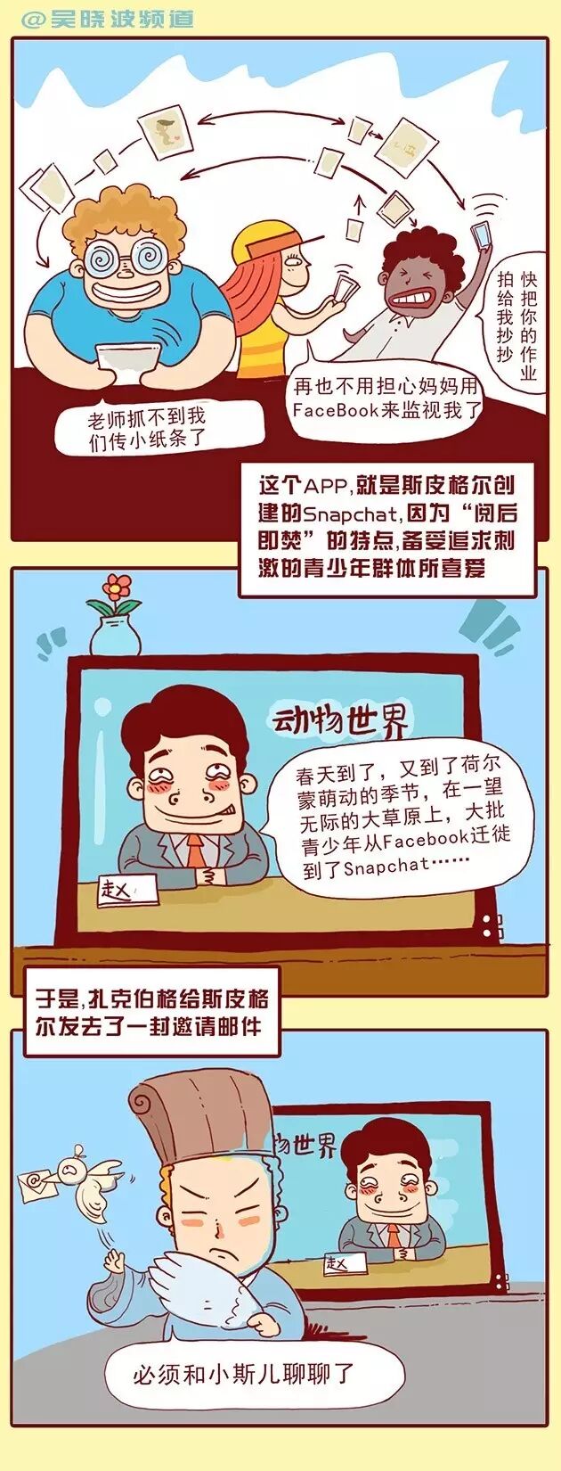 其实,斯皮格尔并没有针对扎克伯格,因为所有投资人都抱怨Snapchat:“就好像见教皇一样”,Snapchat最早的投资人甚至是靠人肉才找到他们的,所以当时很多人不理解扎克伯格为什么对这家小公司感兴趣。但是上个月,斯皮格尔的Snapchat再度融资18亿,估值200亿——比扎克伯格当年的30亿涨了近6倍——证明了“收购狂人”扎克伯格的眼光。