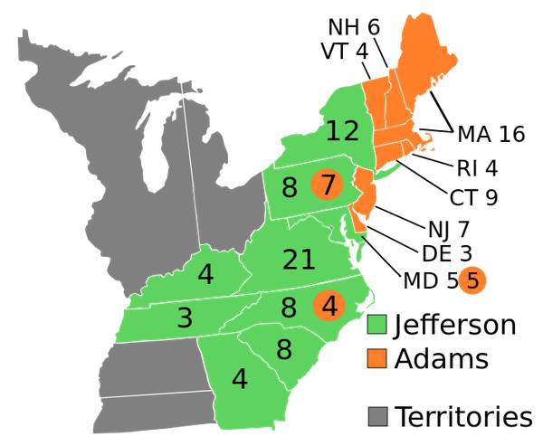 最终杰弗逊以73对65选举人票“击败”现任总统亚当斯,荣登宝座