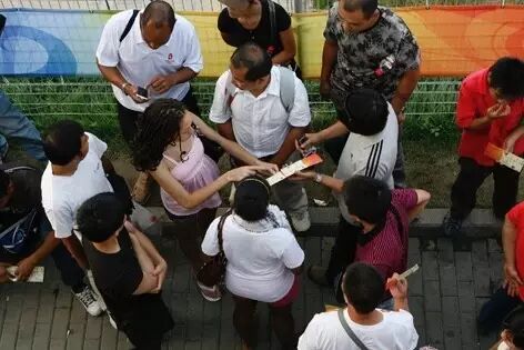 迫不得已,我们从线上转向线下,到比赛场馆附近现场找票。打击黄牛的舆论越来越紧,但警察不会抓买票的人,我们可以放心地在场馆周围寻找目标。要买到一张票并不容易,询问20个人,可能只有1个人有多余的票,而且价格不一定能谈拢。其实,那时候每一个有余票的人,都是潜在的黄牛,都想多卖点钱。