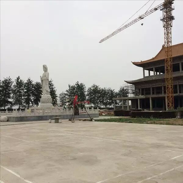 听起来环境好像还不错,其实这个寺院很穷。大雄宝殿盖了一半,瓦片儿还没贴完资金就断了。钢筋水泥板统统堆在菩萨像旁的小草坪上,橙黄色的升降机在高空半悬。僧人们平时念经只能去旁边一处连暖气都没装的小平房,即使是春夏季节,打坐时间久了,腿部也会感到阴凉。