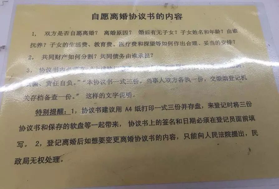 身份证结婚证户口本初审、复印,填好《申请离婚登记声明书》,写好自愿离婚协议书,再依次受理、审查、登记,整个过程走下来不过半个小时。