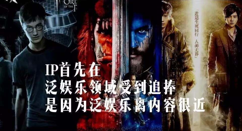 我们最熟悉的IP可能是哈利波特、是魔兽、是西游记、是盗墓笔记。IP之所以首先在泛娱乐领域受到追捧,是因为泛娱乐离内容很近。