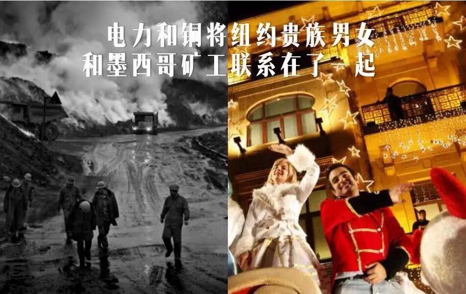 纽约街灯下牵手散步的高贵男女和那些黑暗中开采的墨西哥旷工毫无共通之处,而电力和铜,将他们联系到了一起。
