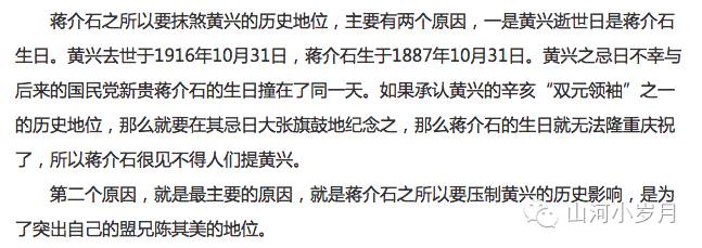 因为老蒋生日,所以不给黄兴过忌日