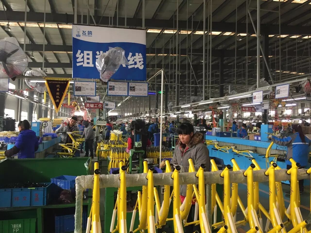 2016年雾霾浓重的冬季,见证了互联网对制造业的又一次狂热变革。在天津市静海开发区津沧高速边的厂房中,天津市飞鸽集团有限公司(以下简称“飞鸽”)的产线正在徐徐运转。一个个颜色鲜黄的20寸车架倒置在传送带上,在历经数十道工序后,变身成ofo小黄车。