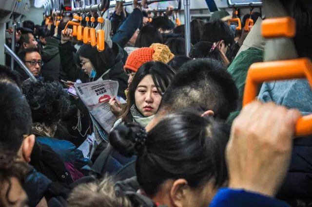 你能感受到你旁边那个人身体的扭动,你能猜出来对面那个人今早吃了什么早饭,呼吸着有点浑浊的空气,你的头贴在别人背上,想离开半分都困难。