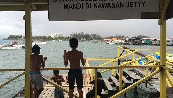 眼前的码头因临近丹容亚路得名,它更像一座两米宽、数百米长的混凝土桥梁,搭建在哥打基纳巴卢西面的海滩上。码头两旁是菲律宾裔渔民的家,由一个个高脚木屋组成的村落,同样搭建于海滩,木屋下面潮涨潮落。
