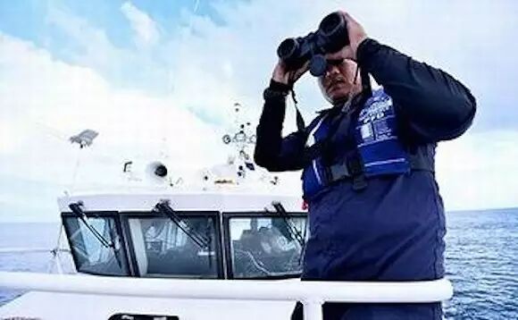 沙巴海事局正在海上搜寻落水者的踪迹。图片来源:网络。