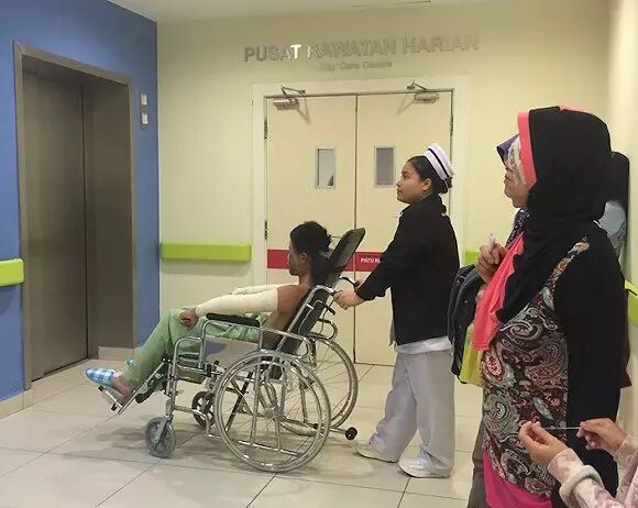 伊丽莎白女皇医院4楼的病房里,除了马来西亚护士和马来西亚公益组织,中国领事馆安排的中资机构志愿者们24小时照看中国游客。两日的暴晒和海水浸泡,让脱水和皮肤灼伤成为他们的主要伤情。