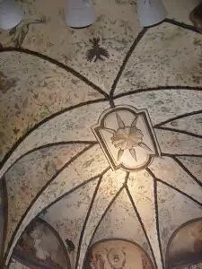▲匈牙利北部RákócziCastel的一间带有阳台小屋子的圆形穹顶上绘有玫瑰花图样。这间小屋子便是用于商议贵族间的密谋。