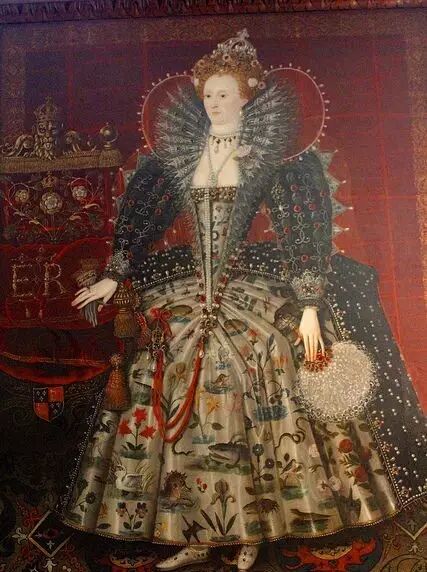 ▲伊丽莎白一世的画像上出现的都铎玫瑰。