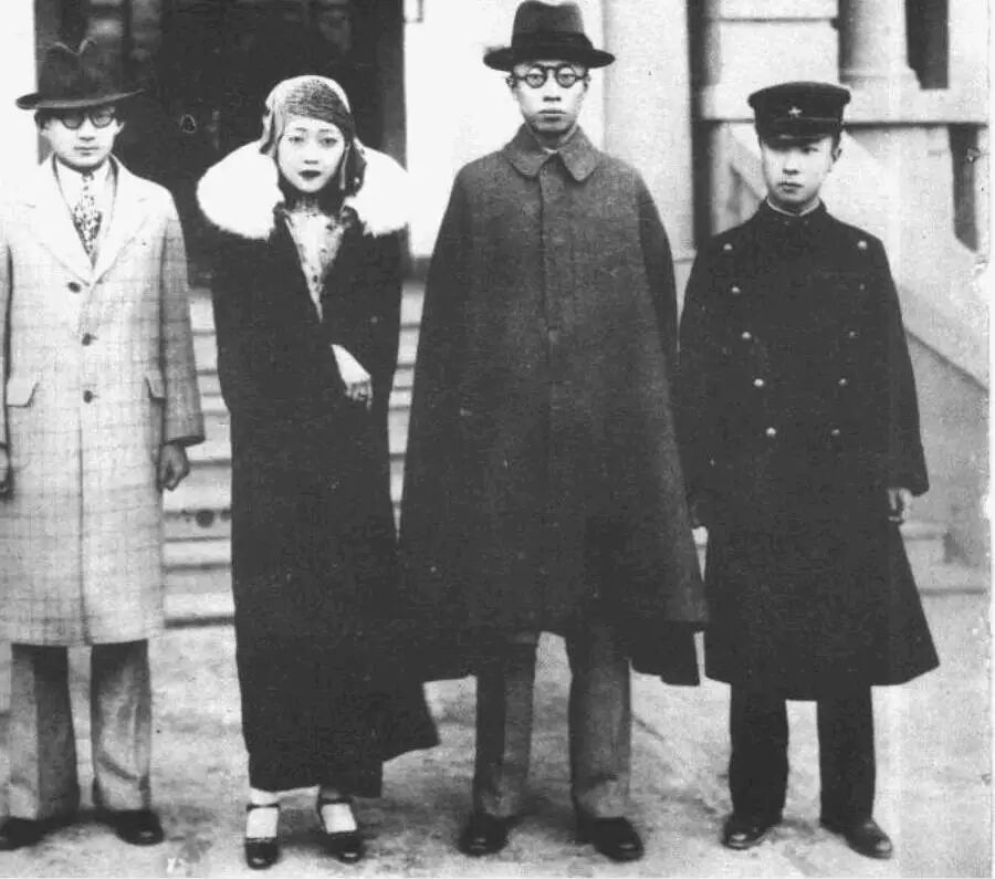 在天津的溥仪与婉容、溥杰(右一)、润麒