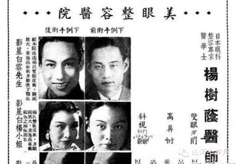除了白杨,公开承认自己整过容的还有著名小生白云,他开了双眼皮,放大了眼睛,垫高了鼻子,甚至还削了颚骨……手术难度之大,令人咋舌。事实上,民国时期的美容院已经达到了我们所不能想象的专业水平。
