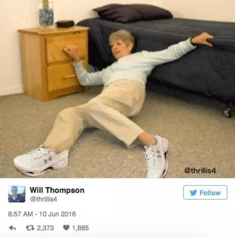 库里 3 代其中一款灰色配色在网上被不少人叫做“奶奶鞋”,还出现了各种恶搞图片。品牌投放在潮流网站 HIGHSNOBIETY 上的一篇赞助文章中(《时尚声明:Under Armour 库里 3 代如何将球场上的卓越带往 Sneakerhead 世界》),鞋圈网红 Qias Omar 的卖力推销也没什么热烈的反响,5 条评论里有 3 条都在泼冷水,“它们就是丑版的 Air Force。”一个 ID 叫做“打折 Yeezys”的用户说:“希望 Qias 少接这种广告,除了健身房,他在其他地方都很努力。”