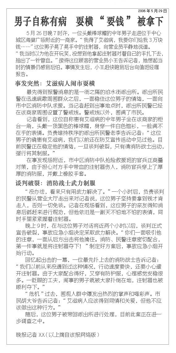 (经核实,小安提到的艾滋病人抽血,是B区19名艾滋病感染者在知情同意的前提下,为国内某研究机构提供血液样本,每位抽血者可以得到300元营养费。其中一些抵抗力差的,在抽血后出现发烧症状。)