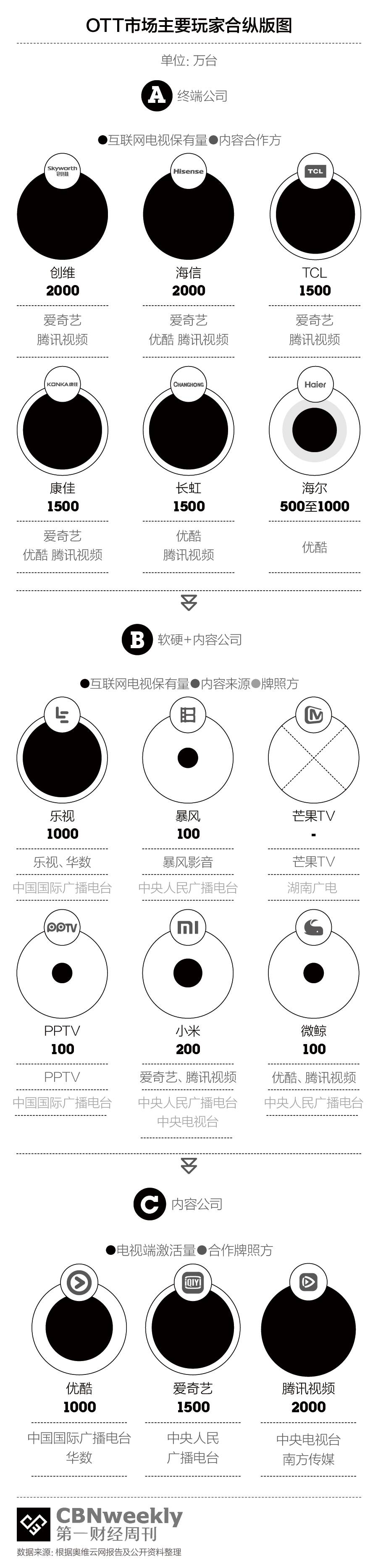 最终,彻底的民资破局,借助的是OTT TV(Over-The-Top TV,即互联网电视)模式,利用互联网给电视用户传输内容。根据奥维云网的调查,截至2016年12月,互联网电视的内容资源总量,包括8000多部电视剧、1.9万多部电影、5000部动漫以及8000多部综艺节目,覆盖了85%的网络视频资源,而互联网电视终端设备保有量则超过2亿台,覆盖了36%的中国家庭。