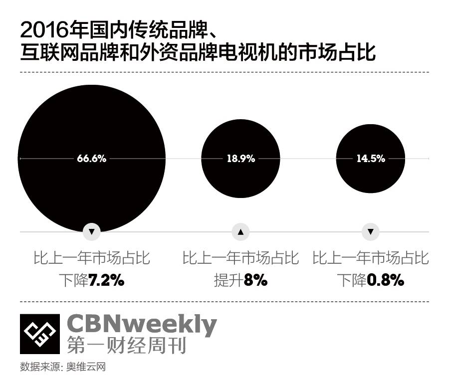 电视作为一种更换周期在5年左右的耐用消费品,购买过程中的线下体验环节依然重要。然而目前,互联网品牌更多集中于线上渠道销售,2016年中国市场电视机销量中,线上渠道占比达到39%,“互联网品牌就是电商渠道的金主。”王志国说,品牌不得不配合电商平台的一贯销售思路,不断压价让利。