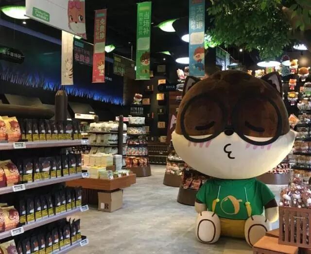 在开出第一家实体店之前,章燎原花了10个月的时间思考开实体店的目的及方案,其中最大的困难,是店铺设计的定位。最终得出的思路是,实体店加入三只松鼠的品牌元素和情感,通过体验,起到沟通线上线下、连接消费者和品牌的作用——这同样也是三只松鼠品牌IP化的惯用做法。
