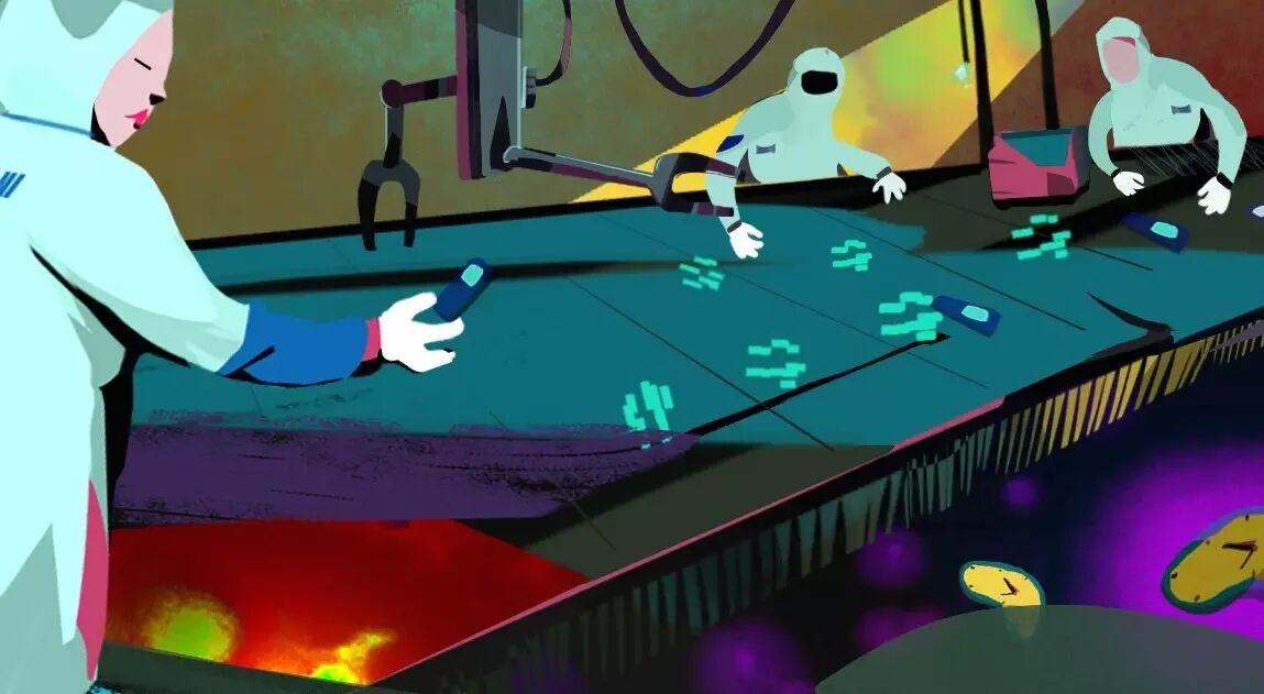 学校的舞蹈老师总强调体型,让她们劈叉下腰,盯着镜子看;而车间生活却如把细沙,日复一日,将工人的神经触觉全都磨钝,让他们疲惫懈怠后,甚至影响到细胞的棱角。在舞蹈老师眼中,身体是用来展现优美的,要像岩石雕刻般有形;而在电子厂,身体是为了配合机器干活的,是可随意替换的物件。