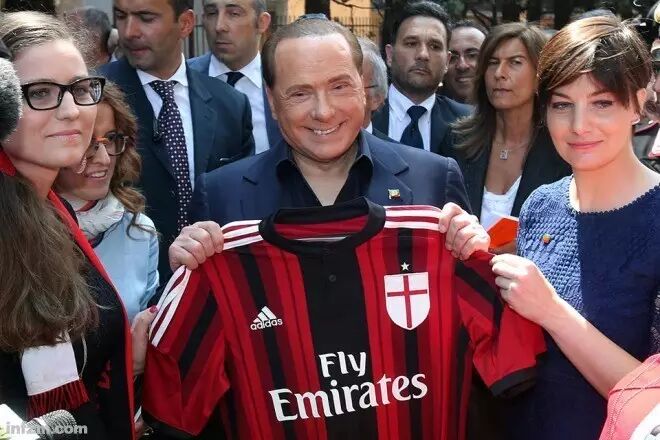 1986年2月,意大利富商、传媒大亨贝卢斯科尼买下AC米兰的绝大部分股权,并为之砸下重金,此后开启了AC米兰以及贝卢斯科尼本人的巅峰时代:AC米兰获得了一系列冠军奖项,生于1936年的贝卢斯科尼也在此后三次出任意大利政府总理,集政治家、富商、媒体大鳄等于一身。