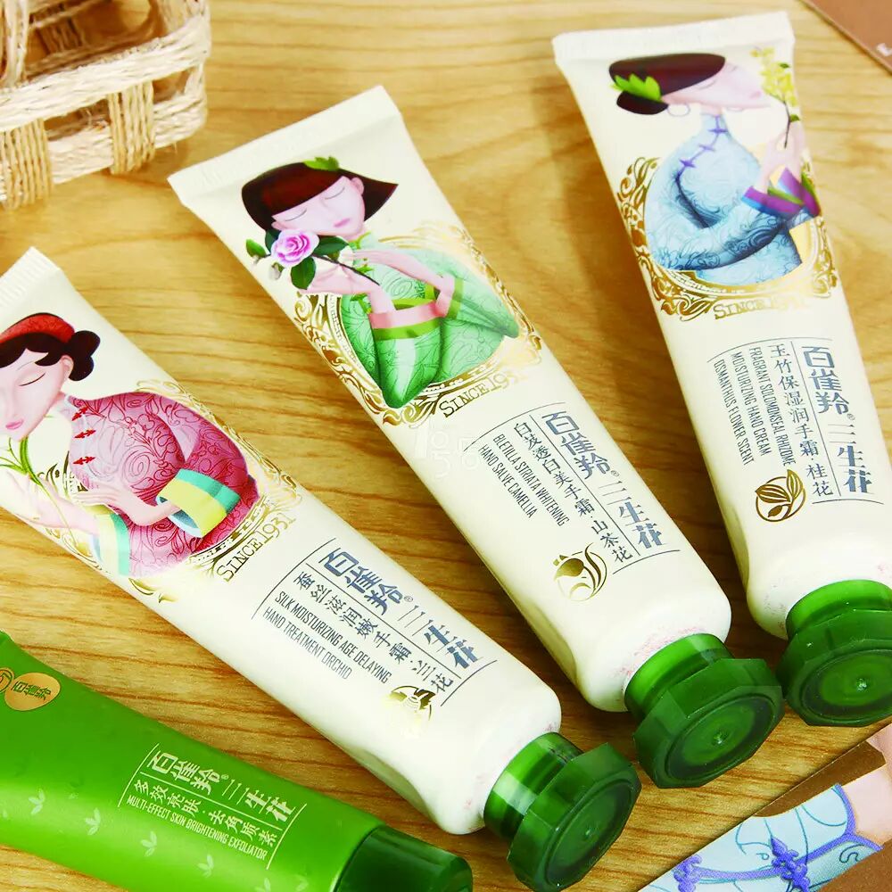 相对于草本产品的大众化,“三生花”系列从包装到品牌概念则更贴近年轻人,品质感也更强。“三生花”品牌在2013年推出的桂花、兰花和山茶花3支护手霜组成的礼盒,定价79元,借助双11在天猫旗舰店上市之初,想不到10万盒的备货居然在1个小时之内体育场售罄——让百雀羚自己都感到意外。这个结果也让“最挑剔”的渠道方屈臣氏盯上了“三生花”。2015年,屈臣氏主动寻求百雀羚合作,将“三生花”作为屈臣氏定制产品在其门店销售。22岁的周杨告诉《第一财经周刊》,两年前她第一次在屈臣氏看到三生花护手霜时,就是被产品的外包装吸引了,再加上看到“买一赠一”的促销,就决定买回家试用。