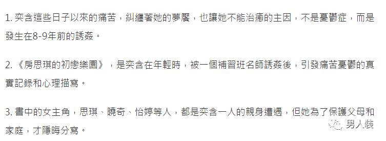 关于患抑郁症的原因,就在这本她根据自己亲身经历写成的小说里:高中16岁开始,林奕含被辅导班老师长期性侵,直到大学前夕。